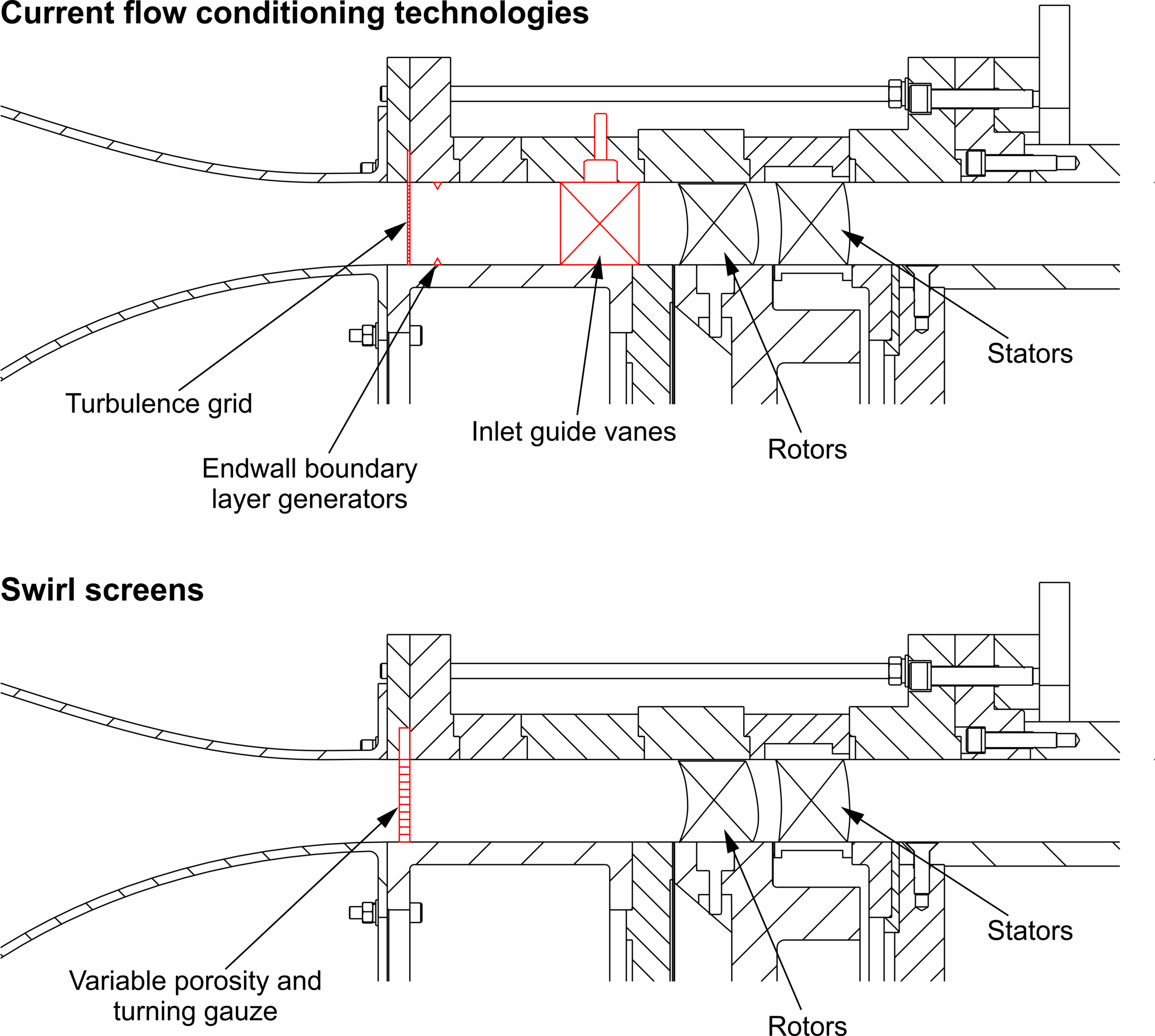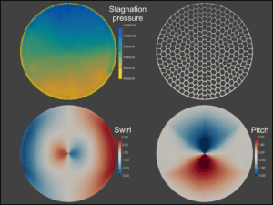Unlike traditional grids or vanes, swirl-screens combine pressure and swirl distortion in a single, compact, low-cost component. This makes them invaluable tools for studying fan–distortion interaction in boundary layer ingestion (BLI) propulsion, crosswind conditions, and high bypass ratio turbofans. They can also be used to replicate the flow in the middle of an engine, simulating the flowfield downstream of struts, ducts, combustors or the cumilative effect of many upstream blade rows.