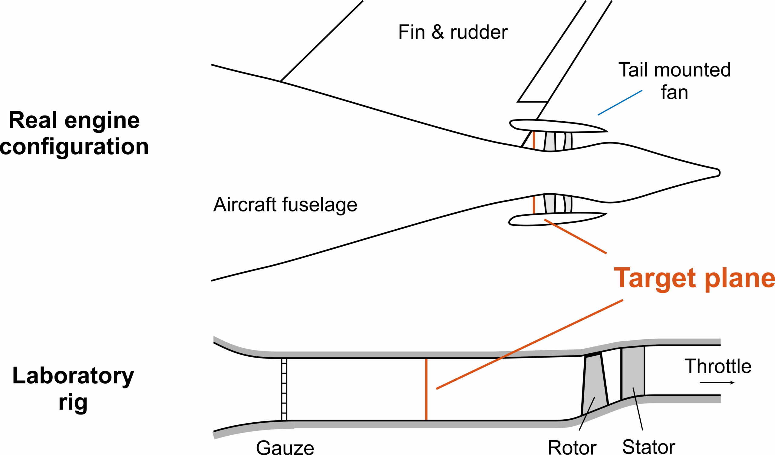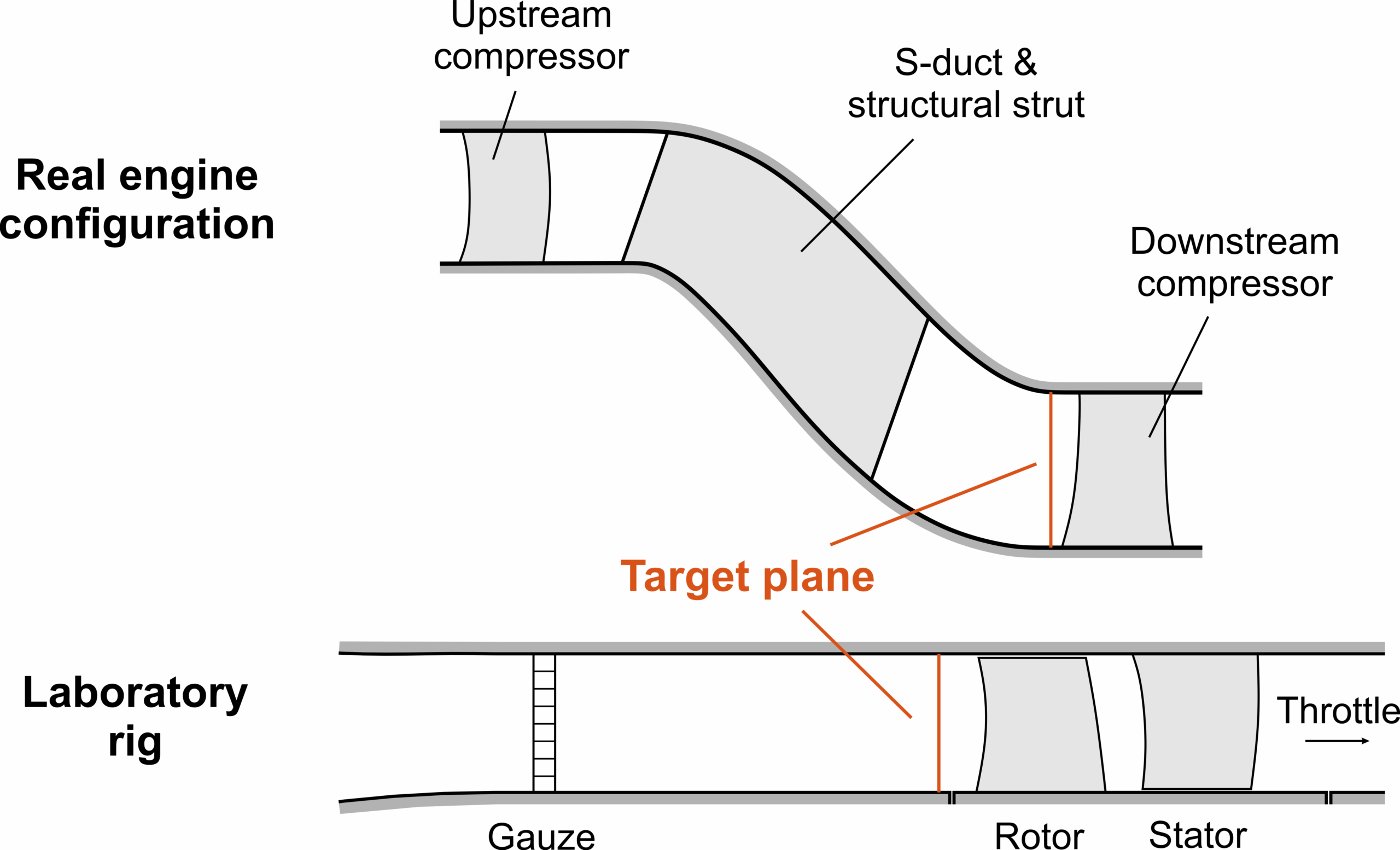 Recreated realistic embedded-compressor inlet profiles in a compact rig.